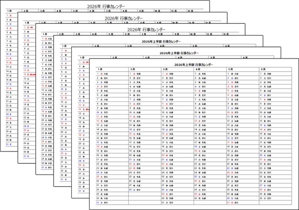 2026年(令和8年)行事カレンダー・祝日・六曜表示|無料ダウンロード