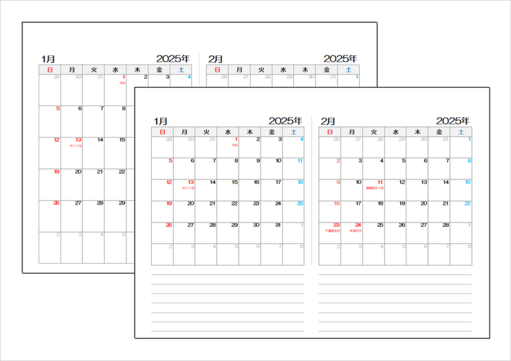 2025年(令和7年)月めくり2ヶ月カレンダー|無料ダウンロード