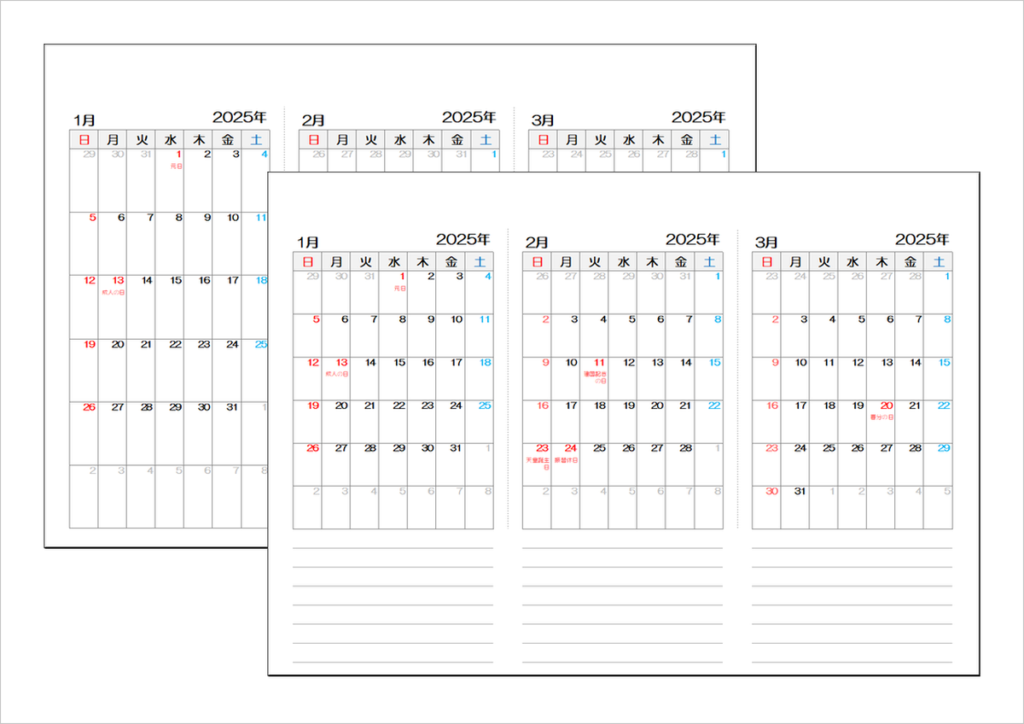 2025年(令和7年)3ヶ月カレンダー|Excelテンプレート無料ダウンロード