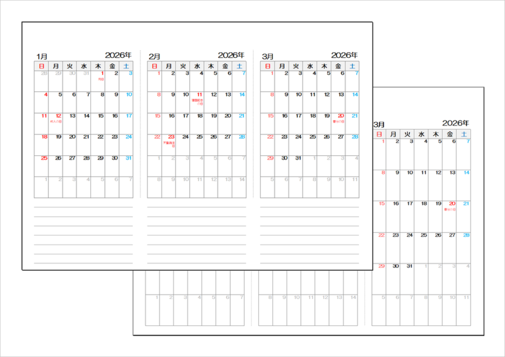 2026年(令和8年)3ヶ月カレンダー|Excelテンプレート無料ダウンロード