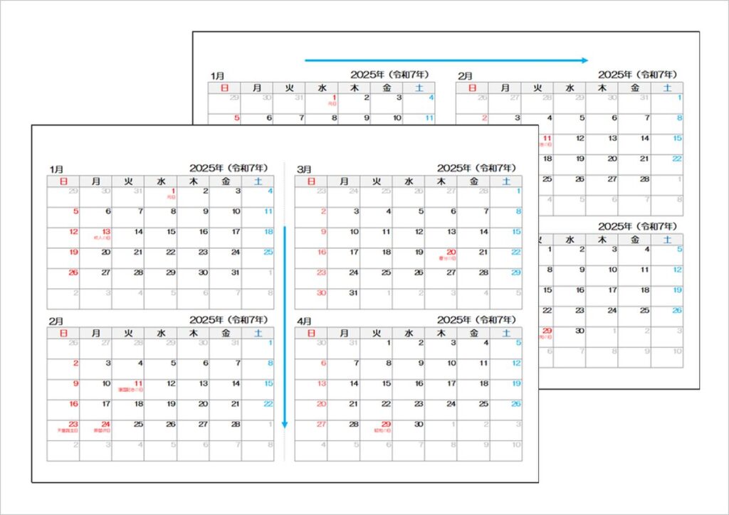 2025年(令和7年)4ヶ月カレンダー|Excelテンプレート無料ダウンロード