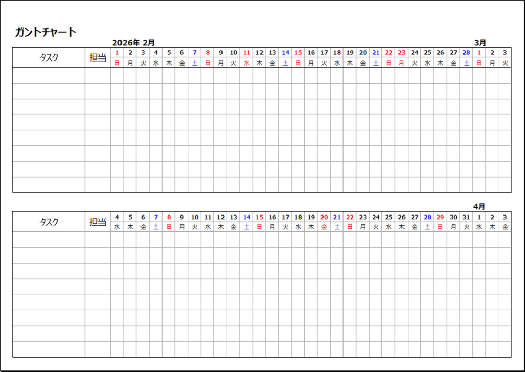 ガントチャートカレンダー