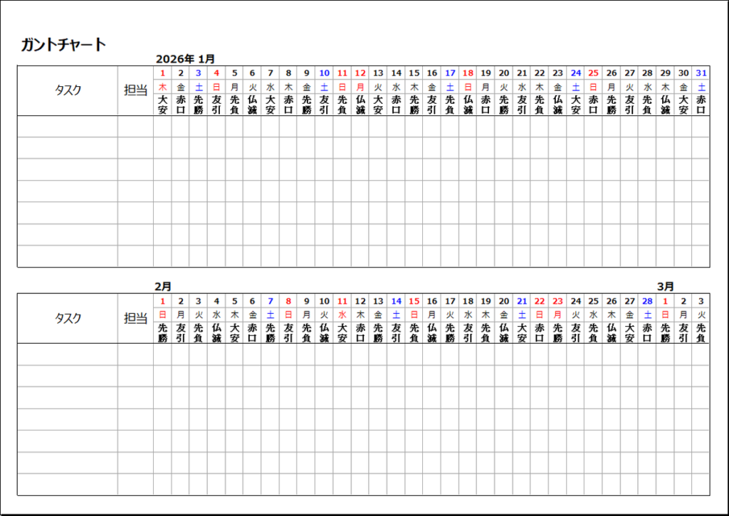 六曜入り ガントチャートカレンダー