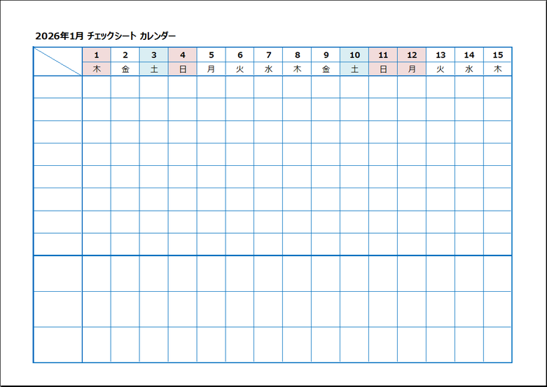 2026年1月[早番・中番・遅番・夜勤]自動表示 横型シフト表カレンダー