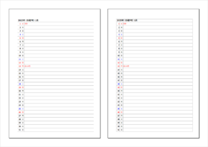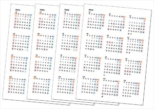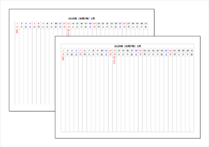 また、日曜始まりと月曜始まりそれぞに、前後の月の日付を表示した形式があり、全部で4種類になります。