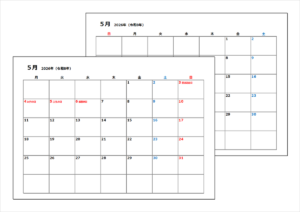 また、日曜始まりと月曜始まりそれぞに、前後の月の日付を表示した形式があり、全部で4種類になります。